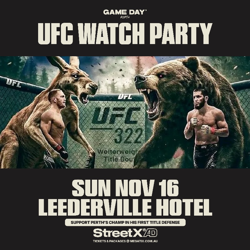 Support our hometown champion at Perth’s only open-air UFC Watch Party.